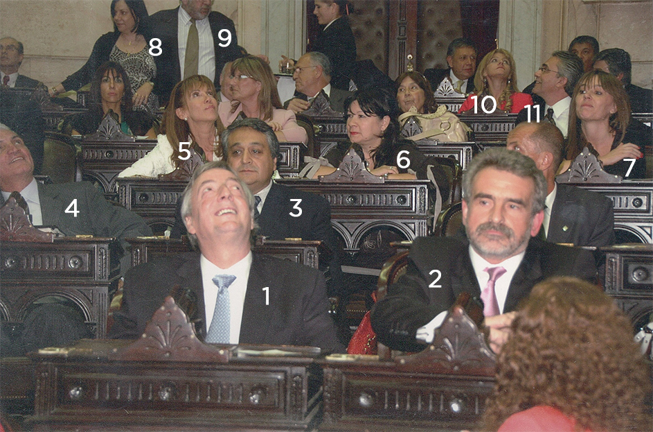Los diputados de la Nación Néstor Carlos Kirchner (1), Agustín Oscar Rossi (2), Juan Carlos Dante Gullo (3), José Antonio Vilariño (4), Isabel Beatriz Visconti (5), Julia Argentina Perié (6), Juliana Di Tullio (7), Remo Gerardo Carlotto (8), Sandra Marcela Mendoza (9), Hugo Rubén Perié (10) y Viviana Mónica Damilano Grivarello (11), entre otros, en el recinto de la H. Cámara de Diputados de la Nación.